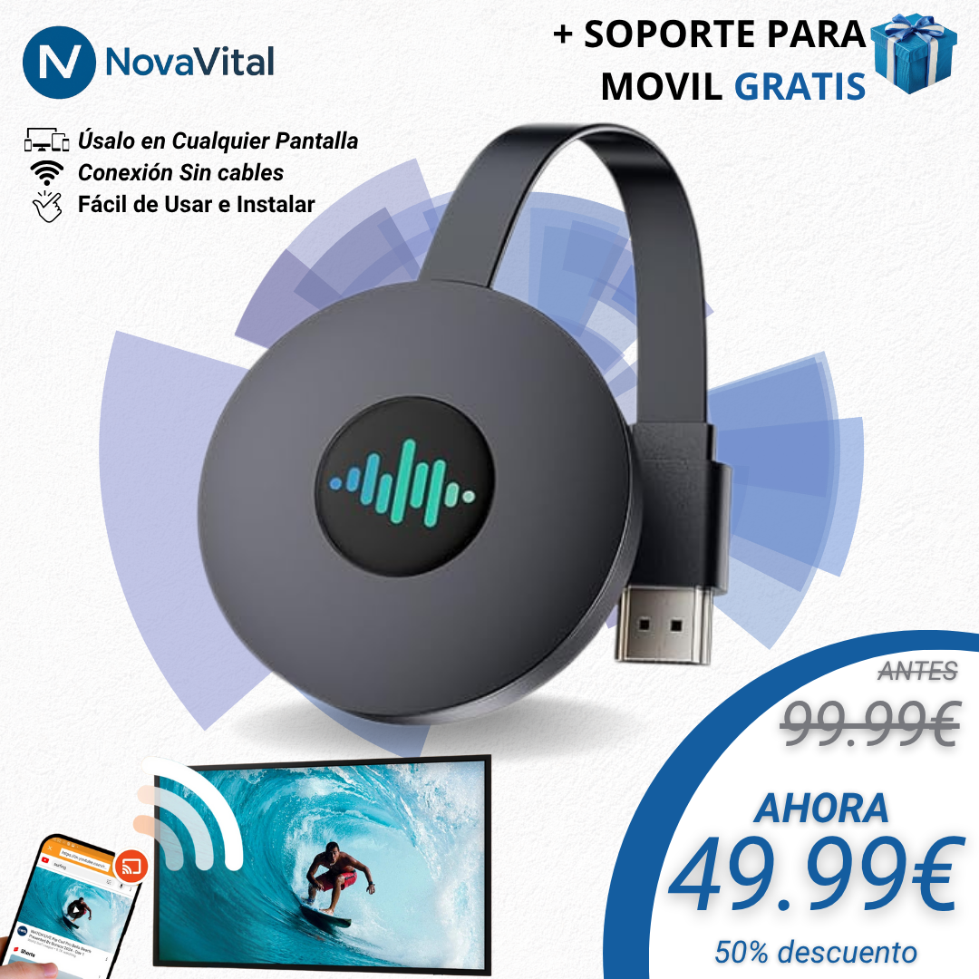 Olvídate de los cables y adaptadores obsoletos. Con NovaTV™, solo necesitas conectar el dispositivo al HDMI de tu TV y sincronizarlo con tu móvil en segundos. Proyecta tu contenido favorito en pantalla grande con un solo toque y sin perder calidad.